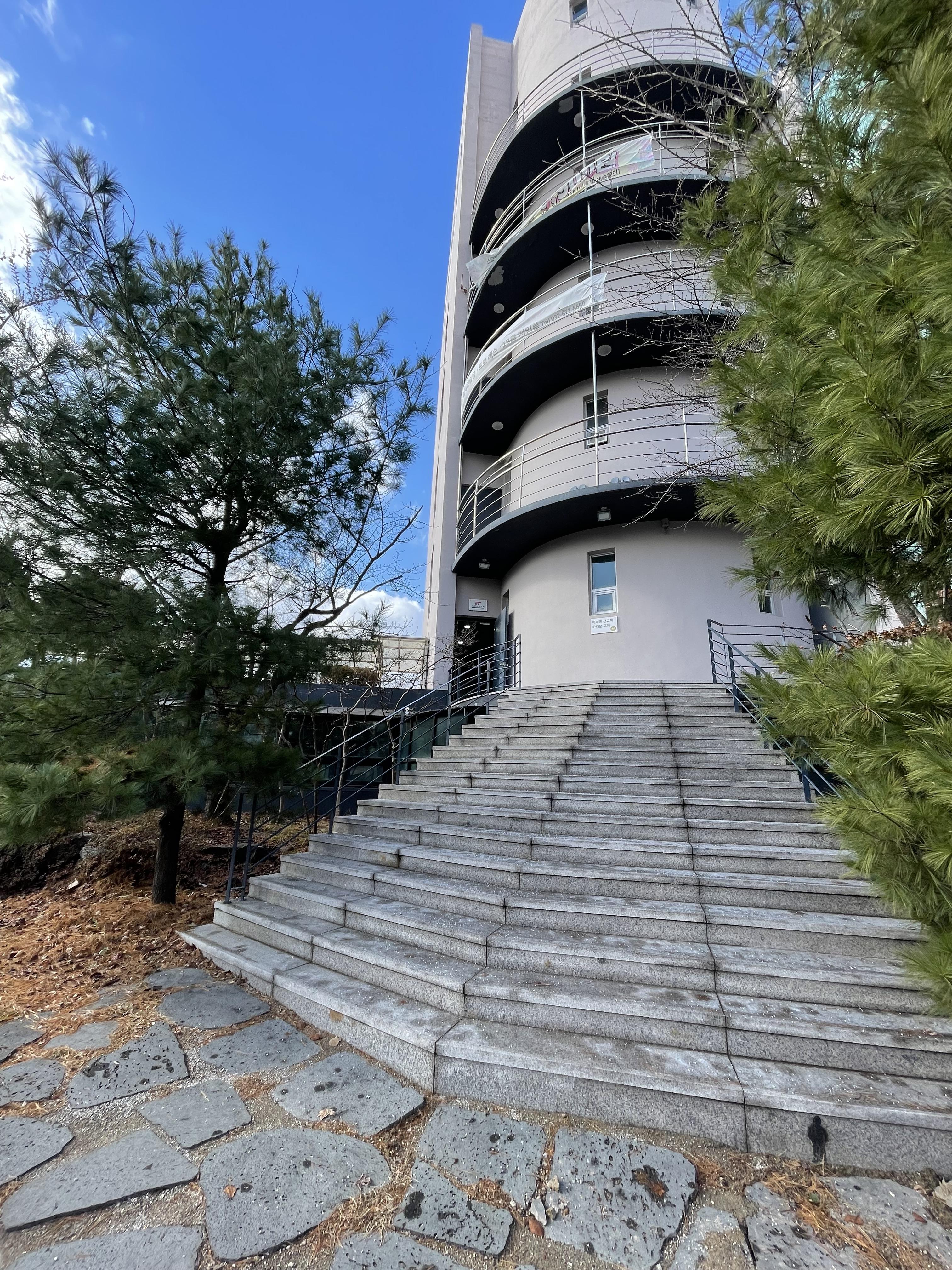 그런데 저 건물을 일단 입장하기엔 골프백을 짊어지고 계단을 올라갑니다.. 다른 출입구가 있는 거라면 표시를 해주셔야 할 듯요
